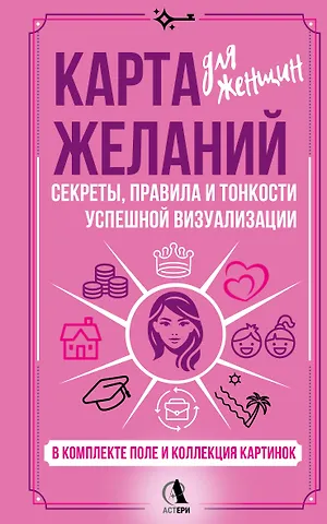 Карта желаний для женщин — готовый набор для визуализации будущего, о котором ты мечтаешь! Это не волшебная палочка, а осознанный метод работы с целями и желаниями. Этот набор с книгой-инструкцией научит правильно осознавать свои желания, формулировать их, визуализировать и, как результат, видеть пути их реализации. Техника карты желаний поможет сфокусировать позитивную энергию и привлечь в жизнь желанные перемены.