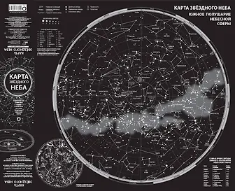 Складная двухсторонняя карта имеет размеры 790х640 мм. Звёздное небо показано в виде карт северного и южного полушарий небесной сферы. Именно так ночное небо с мерцающими на нём галактиками, туманностями и звёздными скоплениями можно увидеть с Северного и Южного полюсов Земли.