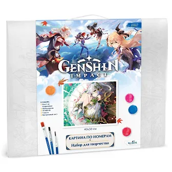 Картины для раскрашивания по номерам по мотивам суперпопулярной компьютерной игры Геншин упакованы в удобную и прочную полупрозрачную пластиковую коробку с ручкой.