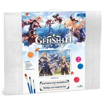 Картины для раскрашивания по номерам по мотивам суперпопулярной компьютерной игры Геншин упакованы в удобную и прочную полупрозрачную пластиковую коробку с ручкой.