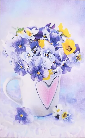 Купила из интереса из-за не совсем обычной формы холста (похож на свиток) и красивой картинки (анютины глазки у меня ассоциируются с детством у бабушки) и не пожалела. В наборе холст, краски, картина для контрольной сверки и кисти. Качество хорошее, ничего не закосячено).