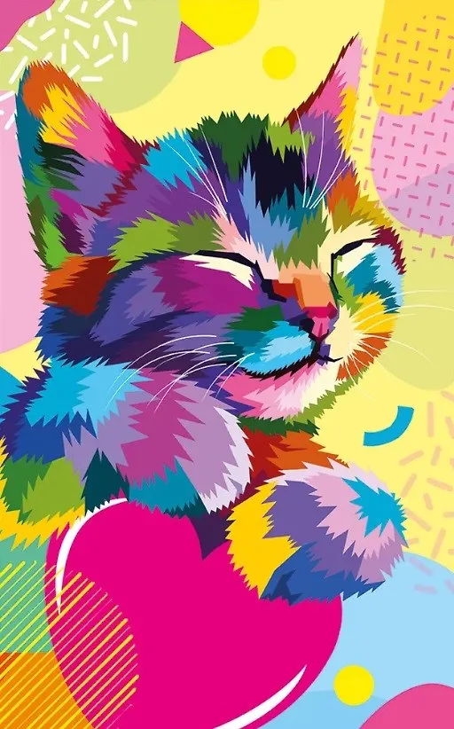 Яркая картина для раскрашивания по номерам с котёнком в стиле поп-арт! Отлично смотрится на стене в детской, небольшая, но стильная для современного подросткового интерьера.