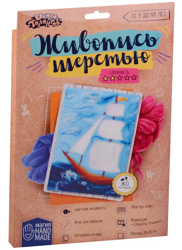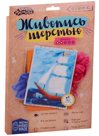 Данный вид творчества основан на валянии. Никогда не слышали о такой технике? Это не проблема: создать мягкое и пушистое панно вам помогут подробные инструкции и видео-мастер-класс, входящие в набор.