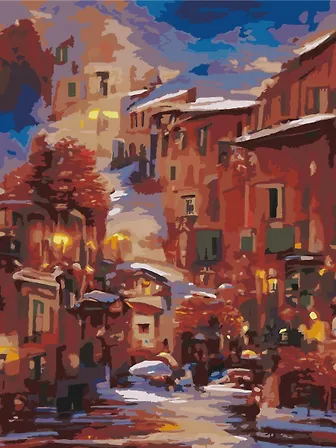Картина по номерам 30х40 см. 30 цветов. На подрамнике. "Вечерний городок"
