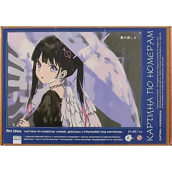 одна кисть, нет дополнительной нумерации, на картине плохо видно цифры, погнутые углы, цифры для красок в виде наклеек вырезаешь сам.