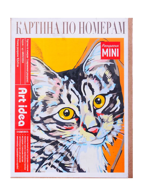Подкупило красивое изображение кота. Есть кисть в наличии, но, для удобства раскрашивания тонких линий, брала ещё одну кисть. Для получения некоторых цветов нужно смешать два других. Это даже интересно. Три баночки оказались с засохшими красками. Пришлось брать краски от других картин (хорошо, что они были) и пытаться получить похожий цвет.