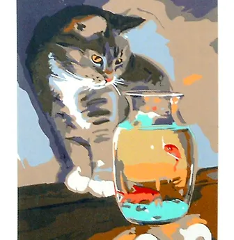 Вашему вниманию предлагается картина по номерам "Кот и аквариум". 14 цветов. Подрамник из древесины, акриловые краски, холст 17х22 см, кисти 2 шт., инструкция со схемой рисунка.