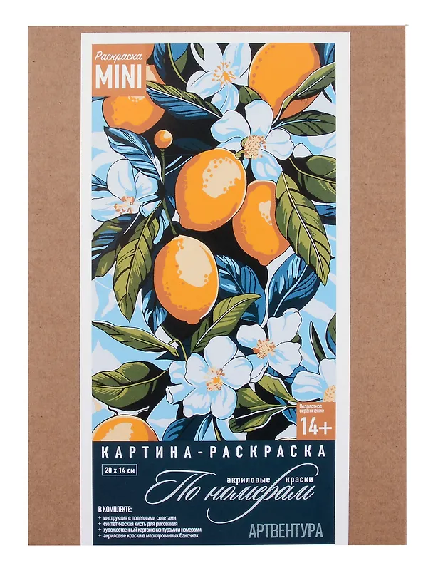 эту раскраску по номерам "цветущие лимоны" взяла для вечернего релакса и не ошиблась. компактный размер 20х14 см идеален для небольшого стола. в комплекте были все необходимые краски и кисточка - сразу можно приступать к творчеству. рисунок с лимонами получился солнечным и жизнерадостным, номера хорошо видны, хотя некоторые участки мелковаты. краски ложатся ровно, не скатываются, после высыхания выглядят ярко. процесс раскрашивания успокаивает, а результат радует глаз. за свои деньги - отличный антистресс и способ почувствовать себя художником. советую всем, кто любит такие арт-терапии!