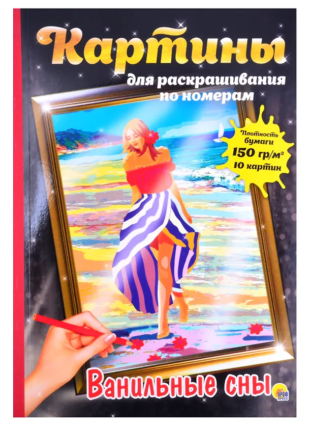 Я в полном восторге от данной раскраски! Хотя правильно ли её называть раскраской, это скорее комплект картин (их 10 штук) по номерам. Тематику картин я бы обозначила как-девушки, они изображены на разном фоне, за разными занятиями, такими как танец, прогулка по берегу моря, прогулка по цветочному лугу, объятия с парнем под дождем. Вот кстати на раскраске написано, что раскраска для младшего школьного возраста, и взять ту же картинку с парнем, ну в наше время, с учетом цензуры для детей, такую картинку детской я бы никак не назвала... хотя, если судить по размеру картин 48,5 на 34, деталям, а они не мелкие, то думаю ребенок бы справился. На форзаце изображены картины, какими они должны получиться в итоге и даны ключи, как раскрашивать, вот сразу возник вопрос к производителю, почему порядок картин на форзаце не соотвествует их порядку в раскраске, приходится, листать, искать, благо в нераскрашенном виде всё более менее-понятно. Печать в раскраске односторонняя, страницы перфорированы, то есть можно отделить картину, раскрасить, поместить в рамку и повесить на стену. Это удобно. Очень порадовала бумага, очень плотная, толстая, пористая, похоже на холст, я в раскрасках с такой не встречалась, интересно будет покрасить на такой. И конечно же сами картины- судя по ключам, в итоге они должны получиться красивущими. И не могу не сказать- цена здесь сказочная, самая привлекательная (а я сравнивала), ну и опять же: впринципе 10 картин по номерам по стоимости этой раскраски не купишь.