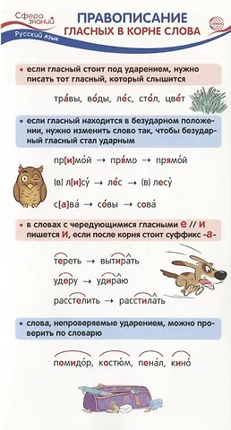 Данная карточка способствует наиболее эффективному усвоению обязательной для изучения на уроках русского языка темы - "Правописание гласных в корне слова". С помощью этой шпаргалки ребёнок быстро запомнит правила, ведь наглядный метод работает безотказно. Карточку удобно носить с собой, и я рекомендую её заламинировать, чтобы она и в дальнейшем сохранила свой аккуратный вид. Стоит шпаргалка недорого, рекомендую её приобрести.