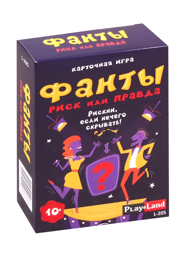 «Фанты. Риск или Правда» – это замечательная карточная игра о честности и отваге. Каждая карта разделена на 2 часта. На одной части – Риск, Вы найдете самые безбашенные задания. На второй части – Правда, Вас ждут самые интересные и откровенные вопросы. Играть можно от 2-х и более игроков.  Игра идеально подойдет для самых разных компаний, как детских, так и взрослых. В этом комплекте собраны самые забавные задания и самые прямолинейные вопросы.