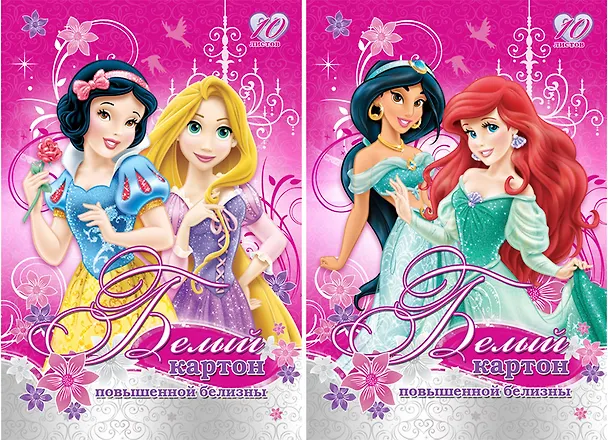 Картон белый 10 листов А4 "Принцессы" премиум, картонная папка, Disney