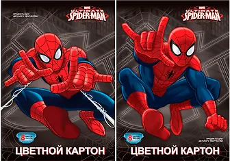 Картон цветной 8 цветов 08л А4 "Spider-man" 2 цвета металлизированны, картонная папка, Disney