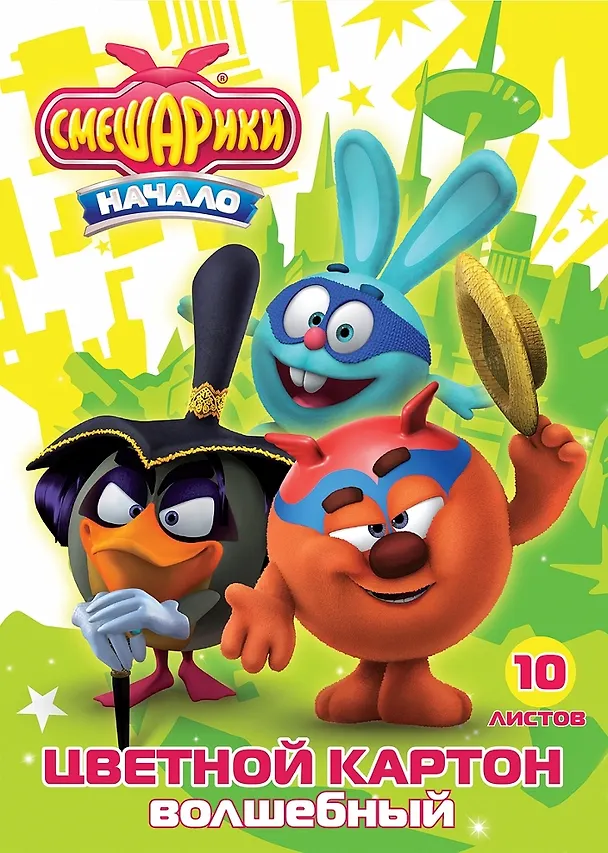 Картон цветной 10 цветов 10л А4 "Смешарики" "волшебный" (золото+серебро), ассорти, КонцепТ-Стиль