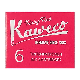 Чернильные картриджи, стандарт international (короткие). В упаковке 6 картриджей. Подходят ко всем перьевым ручкам Kaweco. Производится известным во всём мире производителем пишущих инструментов из Германии, брендом Kaweco. Компания была основана в 1883 году и ручки Kaweco до сегодняшних дней сохраняют традиционный дизайн, разработанный в начале прошлого века. Картриджи подходят к перьевым ручкам любого бренда с короткими картриджами стандарта international.