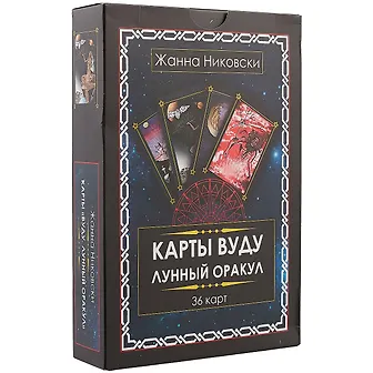 Колода карт "Вуду .Лунный оракул", которая включает в себя карты (оракул), их подробное описание и техники работы с ними. Для каждого, интересующегося данной темой этот материал станет уникальным источником для работы во время предсказаний. Представленная работа позволит проводить не только анализ ситуаций, но и станет вашим настольным инструментом, с помощью которого Вы сможете изменить к лучшему свою жизнь и жизнь близких вам людей, избежать "черных дней" и ошибок, отвести беду. Информация, данная в этом труде, пригодится и практикующим целителям. Они смогут овладеть совершенно новыми методами выявления колдовского воздействия на человека и определить подробно причины колдовства. Также Вы