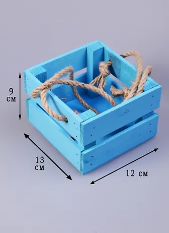 Кашпо дерево Ящик с веревочной ручкой голубой (13х12х9) (1876904)