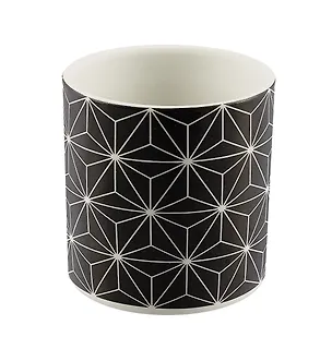 Милое и симпатичное кашпо, расцветка хоть и выполнена в классическом черно - белом цветах, но за счет геометрического рисунка очень симпатичное. Порадовало, что есть дырочка на дне, до этого покупала подобное кашпо, но там ее не оказалось.