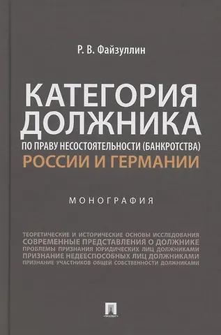 Категория должника по праву несостоятельности (банкротства) России и Германии. Монография