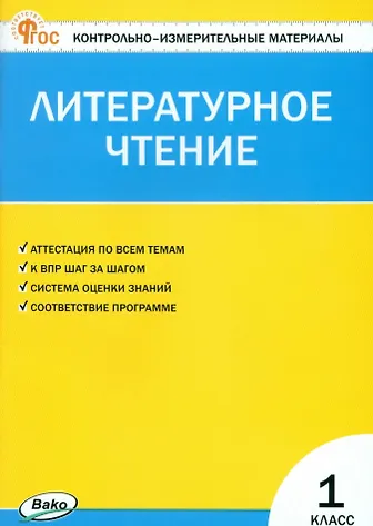 Литературное чтение. 1 класс. Контрольно-измерительные материалы. ФГОС Новый