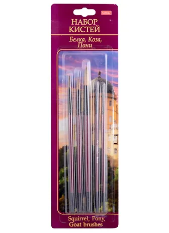 Набор из 5 шт. кистей с разным ворсом : белка, коза, пони, круглые. Все кисти имеют гуммированный волосяной пучок, способный удерживать краску и сохранять кончик заостренным. На ручку нанесен логотип Hatber, номер и название кисти, а также штрих-код . Упаковка в блистерную упаковку с подвесом. Кисти универсальны, ими могут пользоваться как дети, так и профессиональные художники.