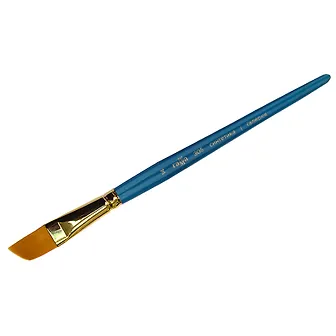 Кисть произвела на меня положительное впечатление. Синтетические волокна отлично удерживают краску и позволяют создавать четкие и аккуратные линии. Плоская скошенная форма кисти делает её идеальной для работы как с крупными площадями, так и для детализации. С короткой ручкой кисть удобно лежит в руке, что позволяет контролировать каждое движение и добиваться нужных результатов. Использую эту кисть для акриловых, хорошо спровляется со своей задачей. Кроме того, кисть легко чистится, что является большим плюсом когда, работаешь с разными материалами.