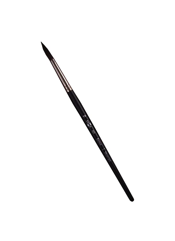 Художественные кисти ГАММА изготовлены из натурального ворса белки. Изделия предназначены для работы с акварельными красками, являются наилучшим инструментом для росписи фарфора и фаянса. Эластичный, мягкий волос прекрасно сохраняет форму пучка. Специальные технологии обработки повышают его упругость. Кисть прекрасно удерживает краску, а способность волосков во влажной среде плотно прилегать друг к другу позволяет наносить тончайшие штрихи. Чёрная матовая ручка выполнена из дерева, бесшовная никелированная обойма придаёт изысканность серии кистей «Маэстро».