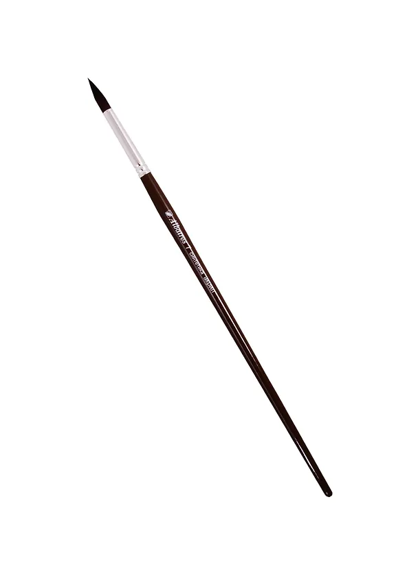 Отличная синтетическая кисточка от "Альбатроса" для любителей рисования. Как написано на рукоятке, она предназначена для живописи акрилом, но она и в работе с гуашью показала себя прекрасно. У кисти плотно сидящая на рукоятке обойма, волосяной пучок крепко зажат, ворс при работе не вылазит и держит форму с острым кончиком.