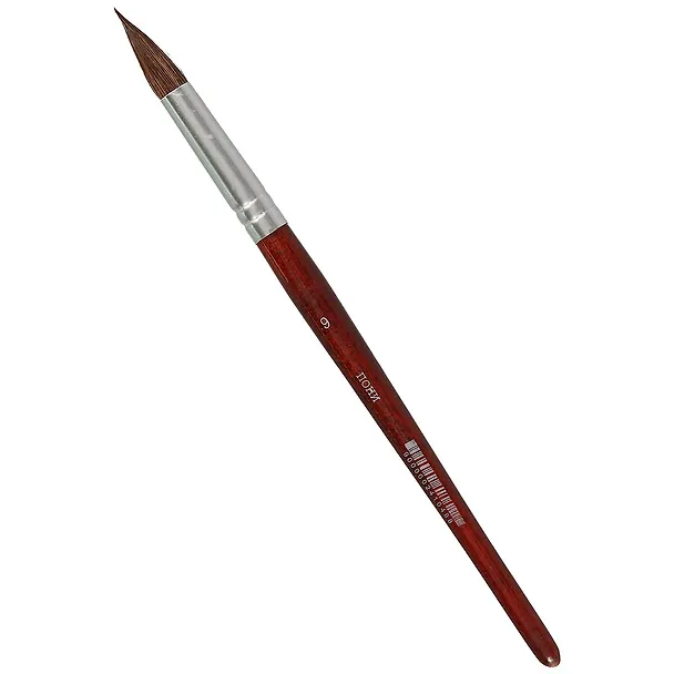 Кисть художественная представляет собой деревянный стилус с хромированной обоймой, зажимающей нормированный волос. Волос прекрасно сохраняет форму, не ломается, впитывает влагу и хорошо моется под проточной струей воды.Кисть идеально подойдет для детского творчества, художественных и декоративно-оформительских работ.