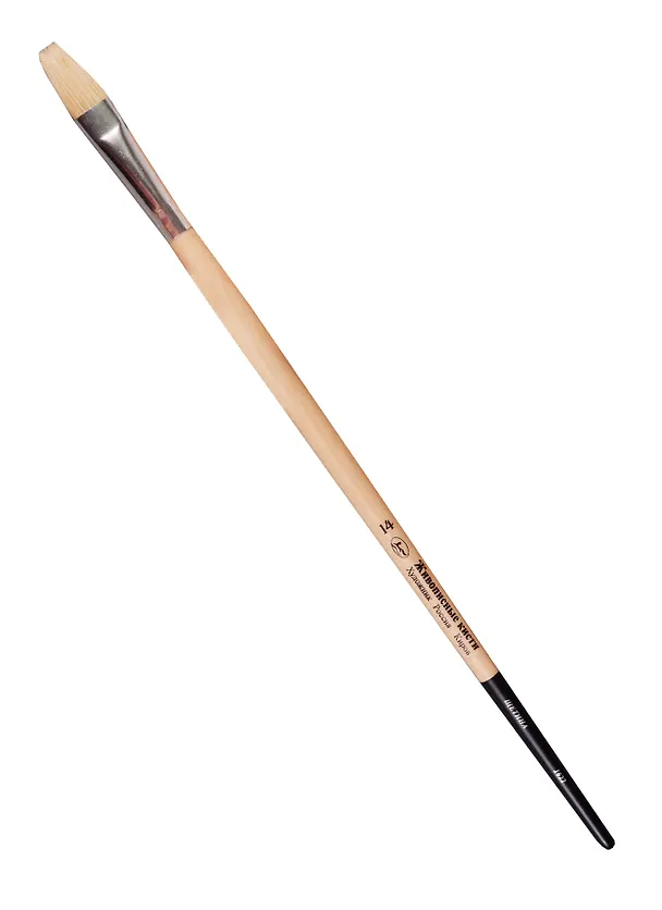 Кисть щетина плоская №14 ручка длинная, лак, серия 1622, ЖК