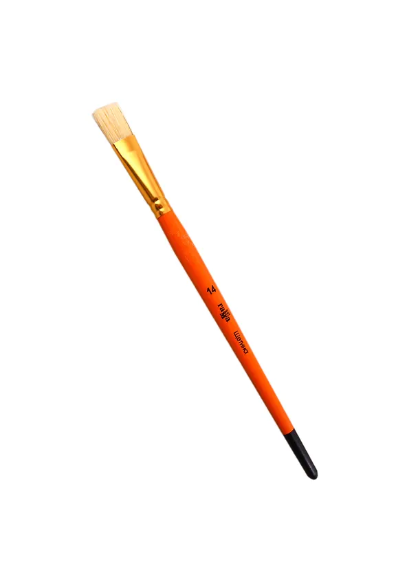 Кисти ГАММА из волоса щетины серии «Классическая» ценятся своей упругостью и жёсткостью. Ещё одним важным свойством является расщеплённый кончик, который способствует хорошей наполняемости кисти и ровному нанесению краски. Изделия предназначены для работ с «тяжёлыми красками»: маслом, акрилом, темперой, гуашью. Натуральные кисти из щетины – отличный инструмент как для детского и школьного творчества, так для хобби и профессиональной живописи. Ручка кисти изготовлена из берёзы и покрыта глянцевым лаком. Цельнометаллическая никелированная бесшовная обойма обеспечивает надёжное соединение ручки и волосяного пучка. • Номер: 14; • Форма кисти: плоская; • Волос: щетина; • Тип ручки: ко
