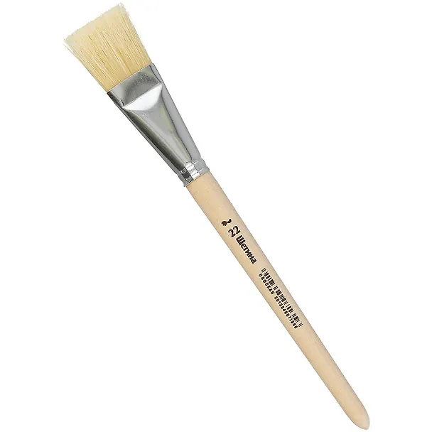 Удобная и очень широкая кисточка. Купила ее, чтоб покрывать поделки, рамки и игрушки акриловым лаком. Щетина у кисточки плотная, при макании ее в краску/лак задерживает хорошо, с нее не капает. Ручка удлиненная у кисточки, и за счет этого удобно лежит в руке. Ворсинки не выпадают. Промывается легко и можно использовать повторно. Стоимость и качество порадовали, к покупке рекомендую.