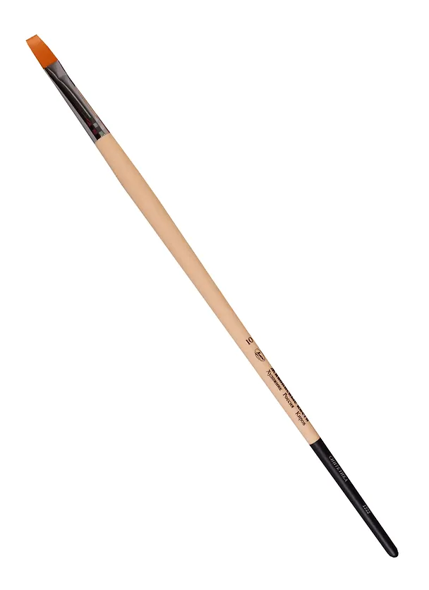 Кисть синтетика плоская №10, жесткая, ручка длинная, лак, серия 1222 /1322, ЖК