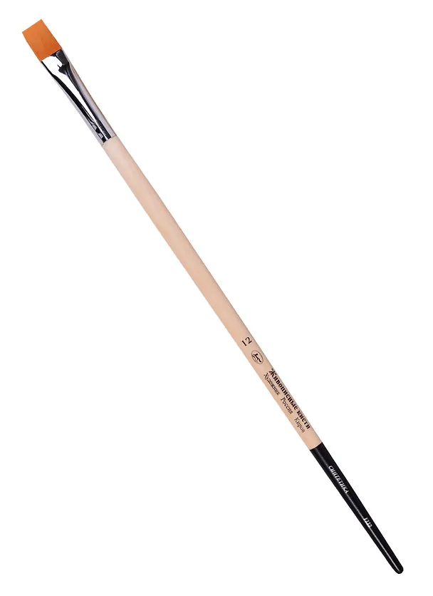 Кисть синтетика плоская №12, жесткая, ручка длинная, лак, серия 1222 /1322, ЖК
