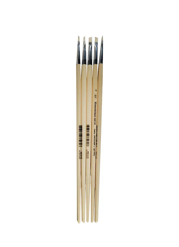 Кисть синтетика+щетина плоская №4, жесткая, ручка длинная, лак, серия 1М22, ЖК