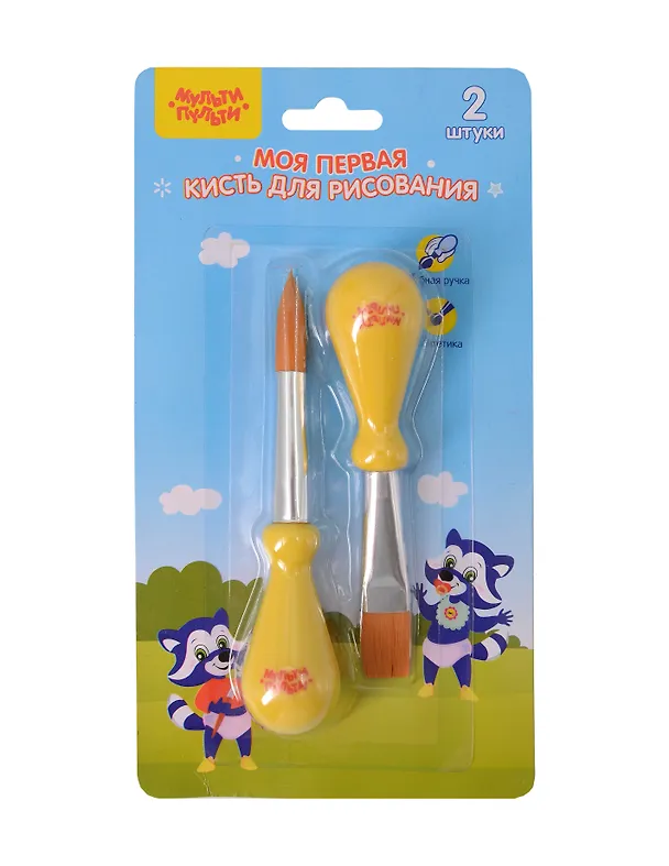 Набор кистей «Мульти-Пульти» разработан специально для самых маленьких художников. Кисти круглой и плоской формы изготовлены из высококачественного синтетического материала, который подходит для рисования разными красками: гуашью, акварелью, акрилом, пальчиковыми красками. Укороченная ручка длиной 6 см имеет удобную форму для лёгкого обхвата детской ладошкой. Надёжная обойма выполнена из алюминия. Диаметр — 11 мм, длина ворса — 27 мм.