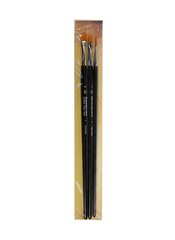 Кисти 03шт синтетика круглая №3, наклонная №7, плоская №8, ручка длинная, европодвес, ЖК