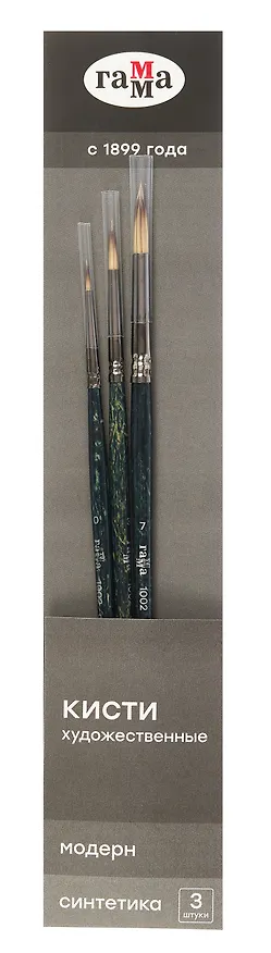 Кисти 03шт синтетика "Модерн" круглые №0, 3, 7, блистер, Гамма