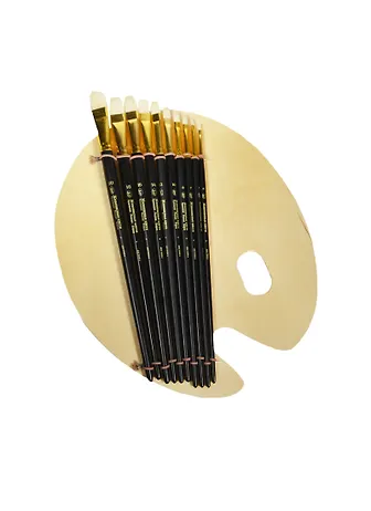 Кисти 10шт щетина плоская №4, №6, №7, №8, №10, №12, №14, №16, №18, №20 + палитра деревянная, ЖК
