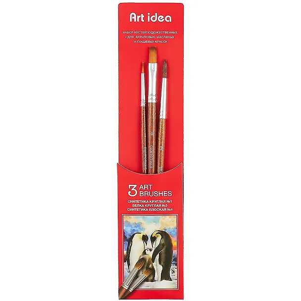 Набор из трёх кистей Art idea сочетает преимущества синтетического и натурального ворса для многогранного творчества.