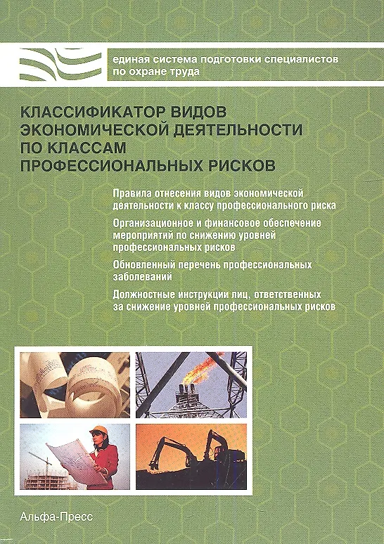 Классификатор включает введенную в действие с 1 января 2013 г. классификацию видов экономической деятельности по классам профессиональных рисков, а также тексты основных нормативных актов, регламентирующих деятельность по управлению профессиональными рисками.
