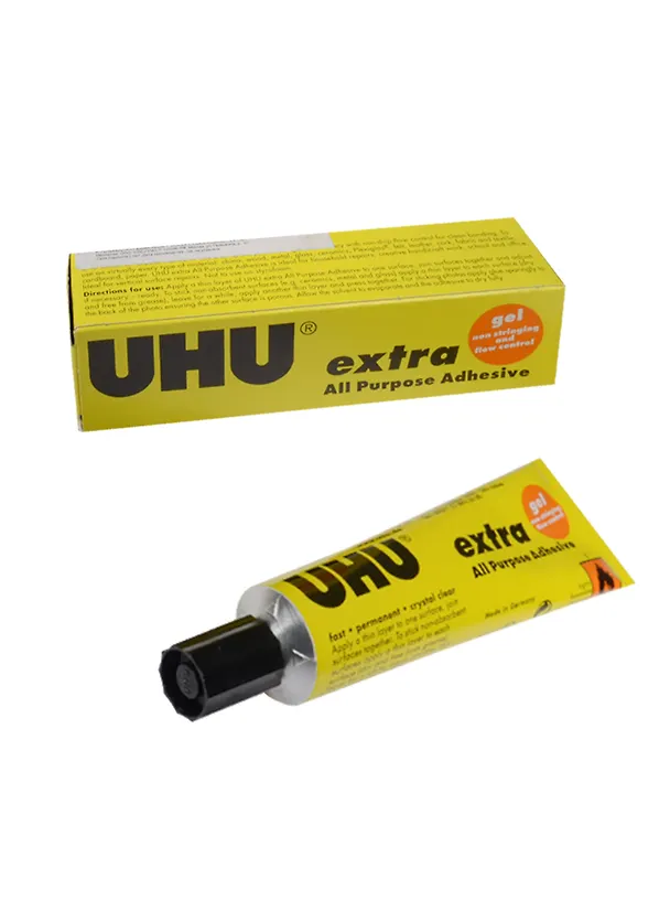 Универсальный клей-гель UHU Alleskleber Gel дает прозрачное клеевое соединение, которое безопасно для здоровья. Клеевой шов выдерживает краткосрочное нагревание до +120 °С, однако подвергать его длительному тепловому воздействию можно при температуре не выше +70 °С. Соединение, получаемое при применении UHU Alleskleber Gel, устойчиво к воде, неконцентрированным кислотам и щелочам, маслу и бензину; неустойчиво к спирту, ацетону, ацетатным растворителям (в том числе к нитрорастворителям) и ароматическим растворителям (толуолу, ксилолу и т.д.). Вес: 31 г.
