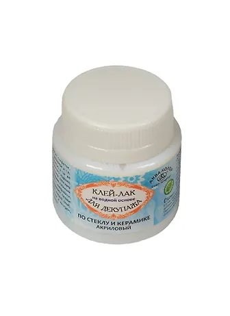 Клей-лак, предназначен специально для декупажа, а именно - для наклеивания бумажных салфеток, декупажных карт, «рисовой» бумаги, распечаток на стеклянные и керамические поверхности, а также для их финишного покрытия.