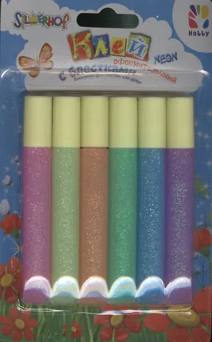 Клей оформительский неон с блестками (6 цв. х 10,5 мл) (435037-60) (блистер)