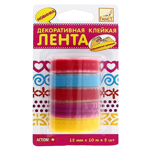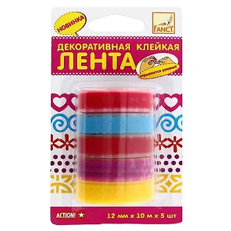 Клейкая лента , Action, декоративный,12мм*10м*5шт, в блистере