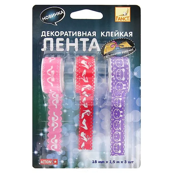 Клейкая лента , Action, декоративный,18мм*1,5м*3шт, в блистере