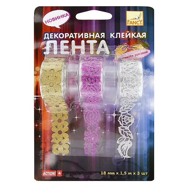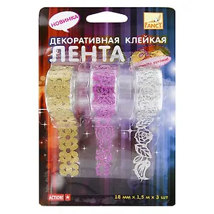 Клейкая лента , Action, декоративный,18мм*1,5м*3шт, в блистере