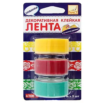 Клейкая лента , Action, декоративный,18мм*10м*3шт, в блистере