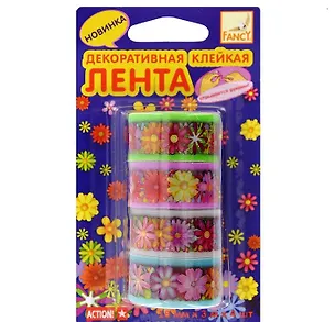 Клейкая лента , Action, декоративный,18мм*3м*4шт , в блистере