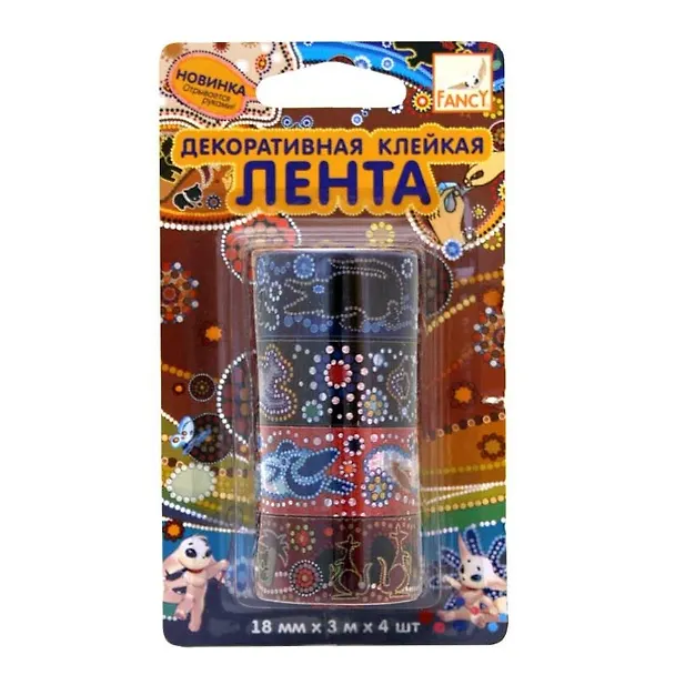 Клейкая лента , Action, декоративный,18мм*3м*4шт, в блистере